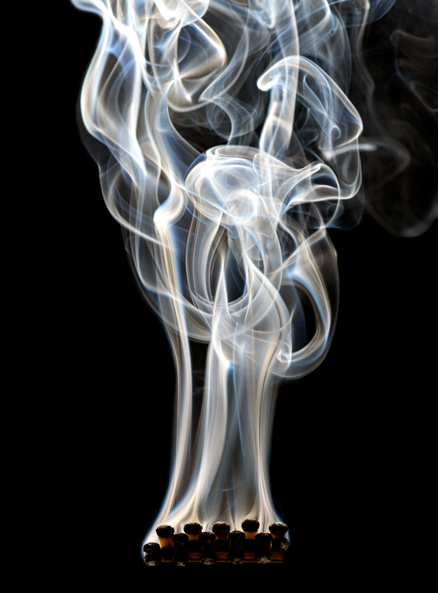 each individual match has created it's own path of smoke.